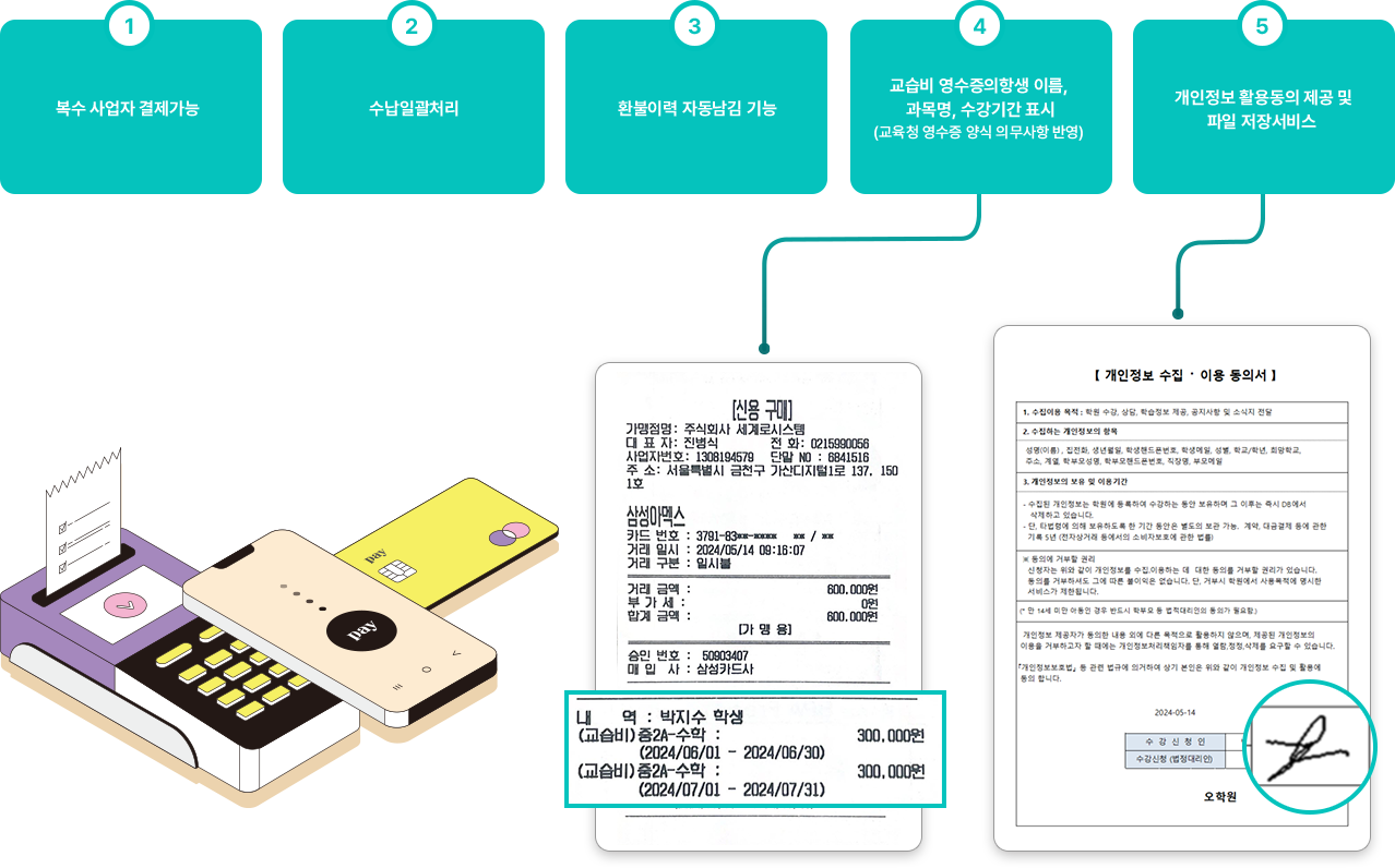 시스템에 학생 별 결제 정보가 자동으로 기록되어 추가 기록이 필요없어요.