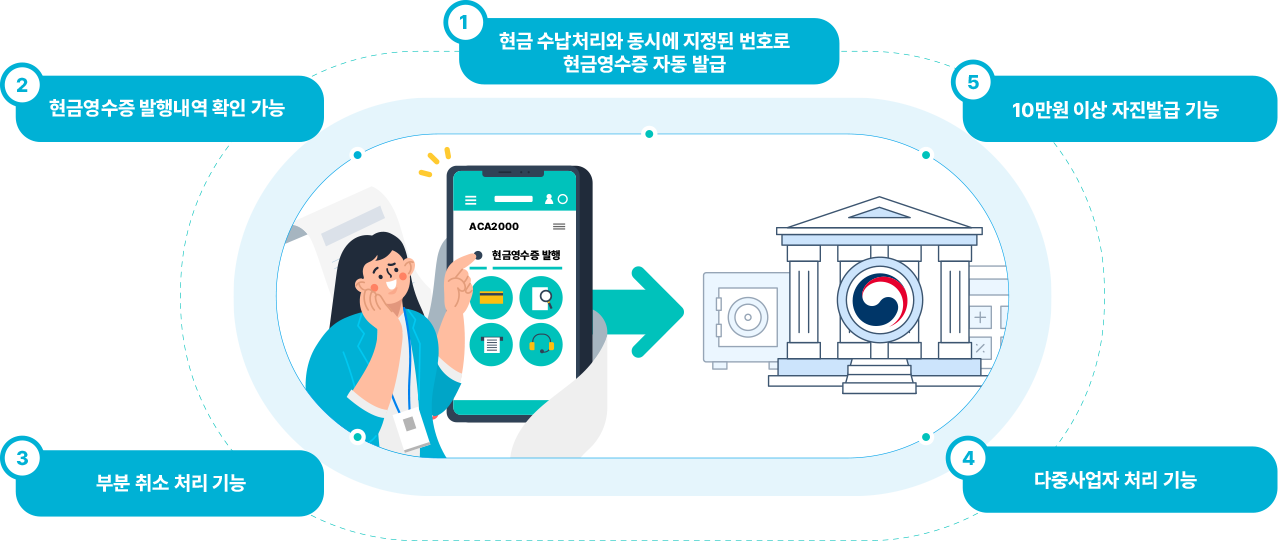 중심업무 수납처리와 동시에 곧바로 국세청으로 현금영수증 처리됩니다.