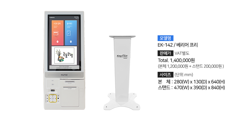 | EK-142 / 베리어 프리 | 1,400,000원 | 월 30,000원 | 추가시 1대당 10,000원 |