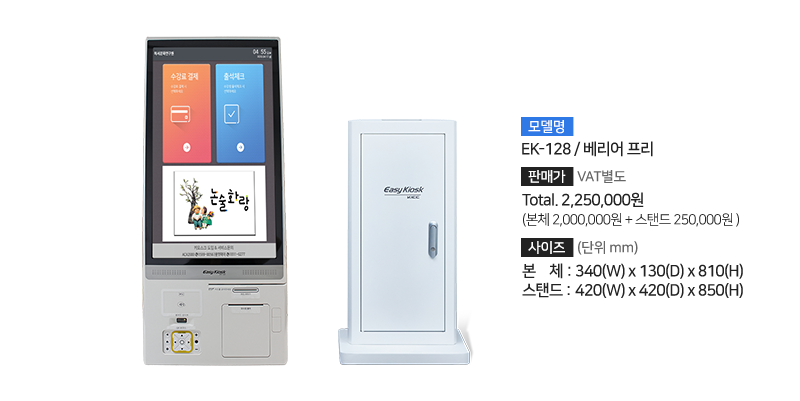 | EK-128 / 베리어 프리 | 2,250,000원 | 월 30,000원 | 추가시 1대당 10,000원 |