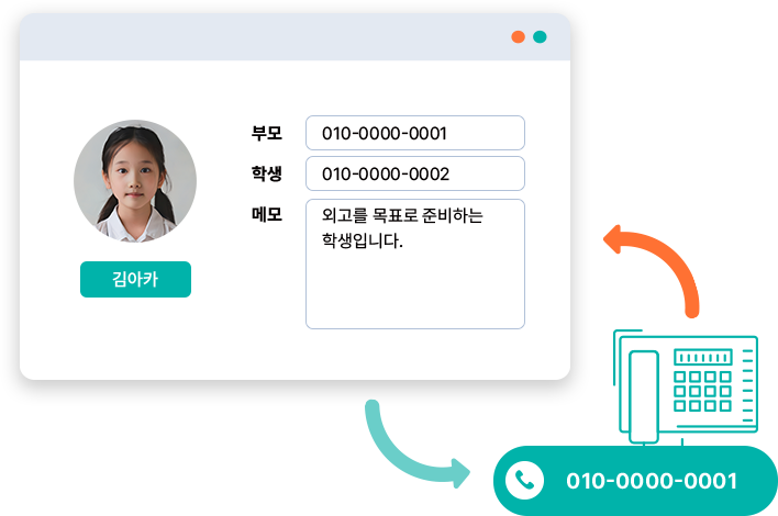 인터넷 전화 연동전화가 울리면 학생정보창 팝업으로 신속한 상담응대