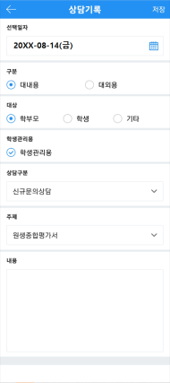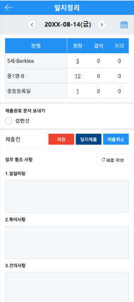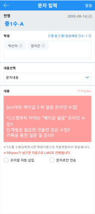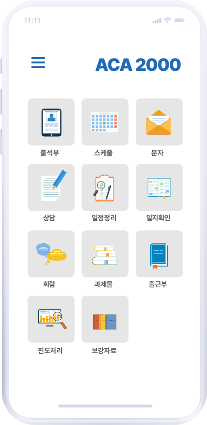 Mobile ACA2000학생관리 어플리케이션 버전으로 출석, 문자발송, 과제, 보강 등을 휴대폰으로 사용하는 서비스